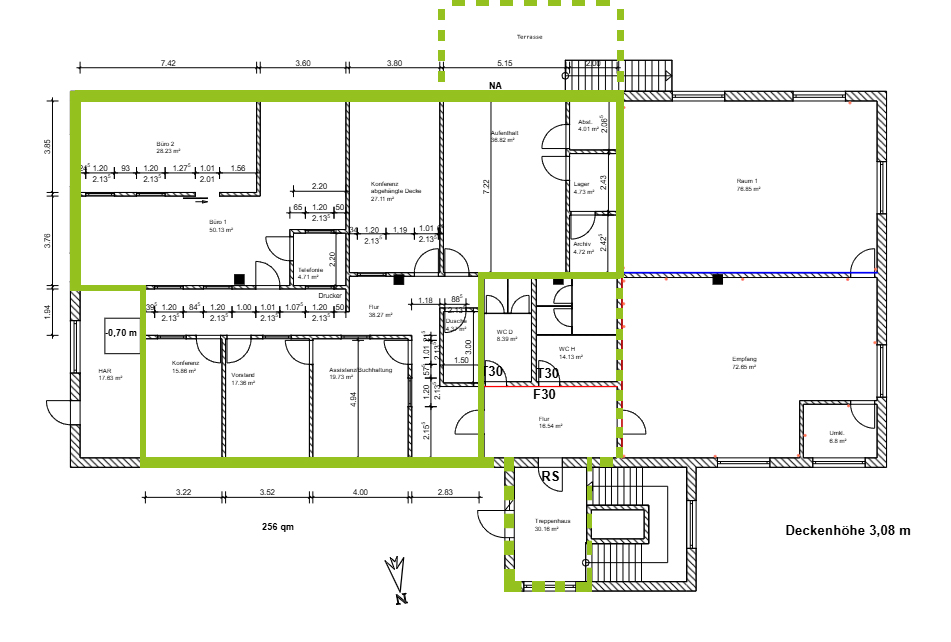 - Einzel- und Großraumbüros: 50,13 m² und 28,23 m² flexibel unterteilbar, ideal für Teams oder Open-Space-Arbeitsplätze